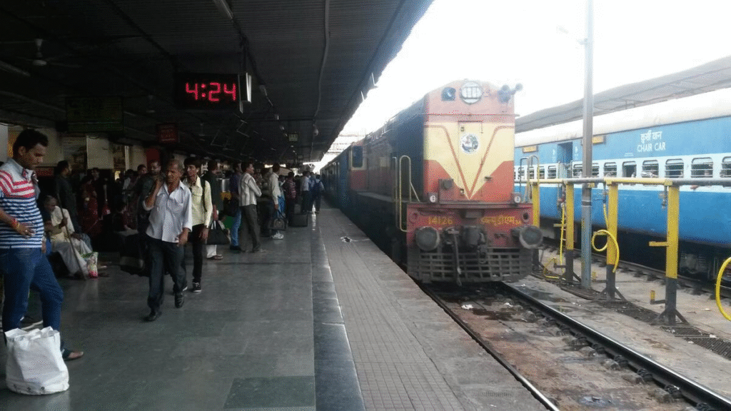 પ્લેટફોર્મ પર સતત જાહેરાતો થઈ રહી છે — “ગોરખપુર એક્સપ્રેસ પ્લેટફોર્મ નંબર બે પરથી રવાના થવા તૈયાર છે…”